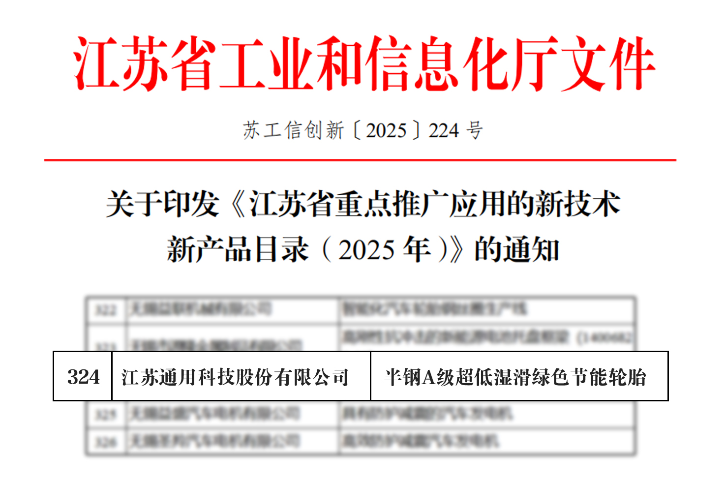 近日,2025年度江蘇省三首兩新認定技術產品名單正式公示。通用股份憑借其在新能源輪胎領域的卓越創新,以《半鋼A級超低濕滑綠色節能輪胎》